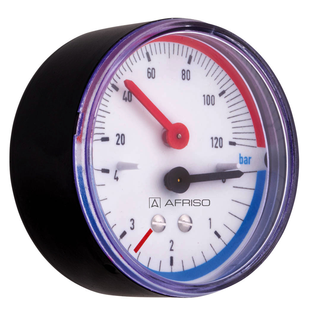 AFRISO Thermo-Manometer TM 80 20/120C 0/4bar G1/2B axial mit Ventil D111