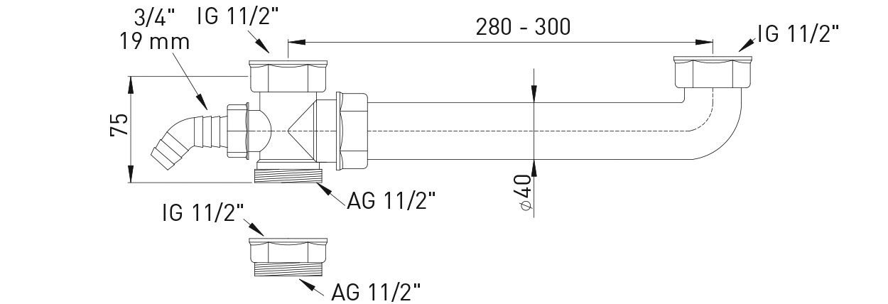 ASW Ablaufverbindung weiß, höhenverstellbar, für Doppelspülen, mit Schlauchanschluss 1 1/2" x 1 1/2"