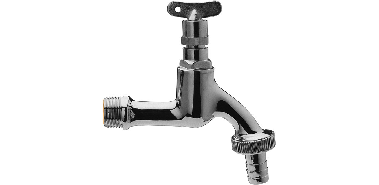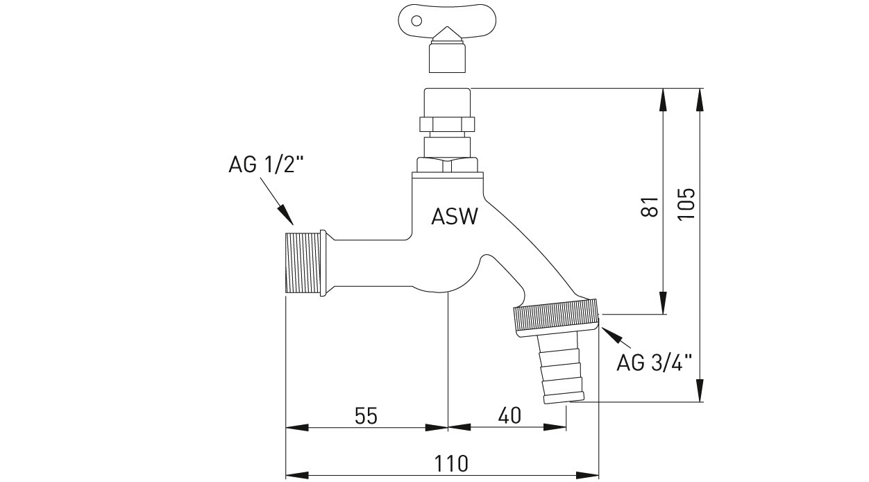 ASW Auslaufventil 1/2", Messing glanz verchromt, Steckschlüssel, Schlauchverschraubung