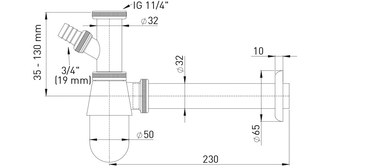 ASW Flaschengeruchsverschluss 1 1/4" x 32 mm, Verstellrohr 120mm Messing verchromt Wasch-/Spülmaschinen