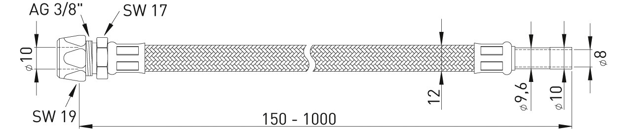 ASW Flex-Trinkwasserschlauch 150 mm, 3/8"x10mm Quetschverschraubung, 10mm Rohrstutzen