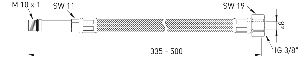 ASW Flex-Trinkwasserschlauch AG M 10 x 1, 335 mm, lang, Überwurfmutter IG 3/8"