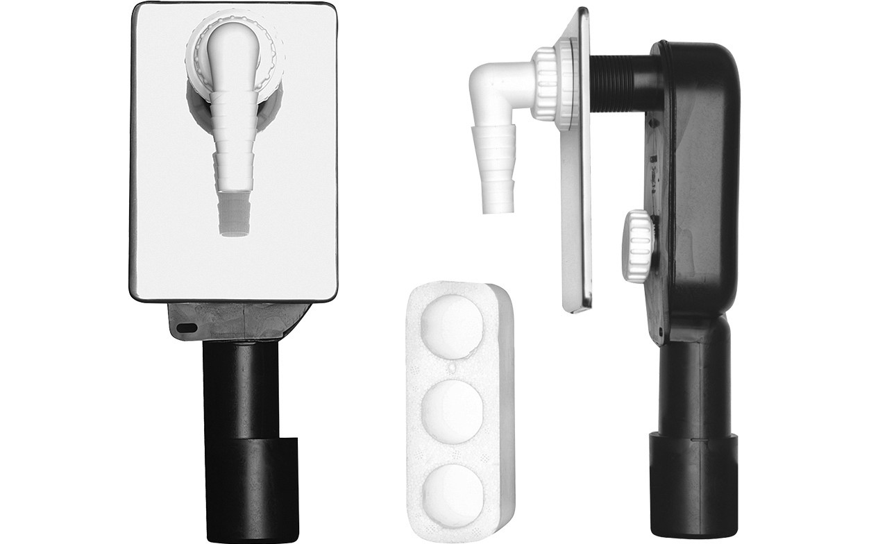 ASW Geruchsverschluss Abgangsrohr 40/50 mm, UP, mit Abdeckplatte Edelstahl, für Geräte