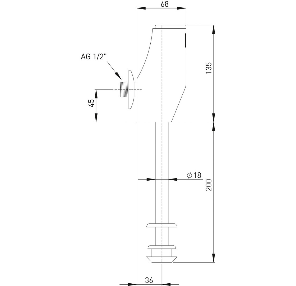 opto-elektronisch berührungslos gesteuert mit elektromagnetischem Ventil und Durchflussbegrenzer, Parameter einstellbar über Fernbedienung (Reichweite, Dauer der Spülzeit), Abdeckrosette, Anschluss AG 1/2"