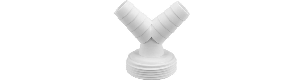 ASW Schlauchanschlussset AG 1 1/2" 45°, doppelt zu Spülengeruchsverschluss, PP weiß