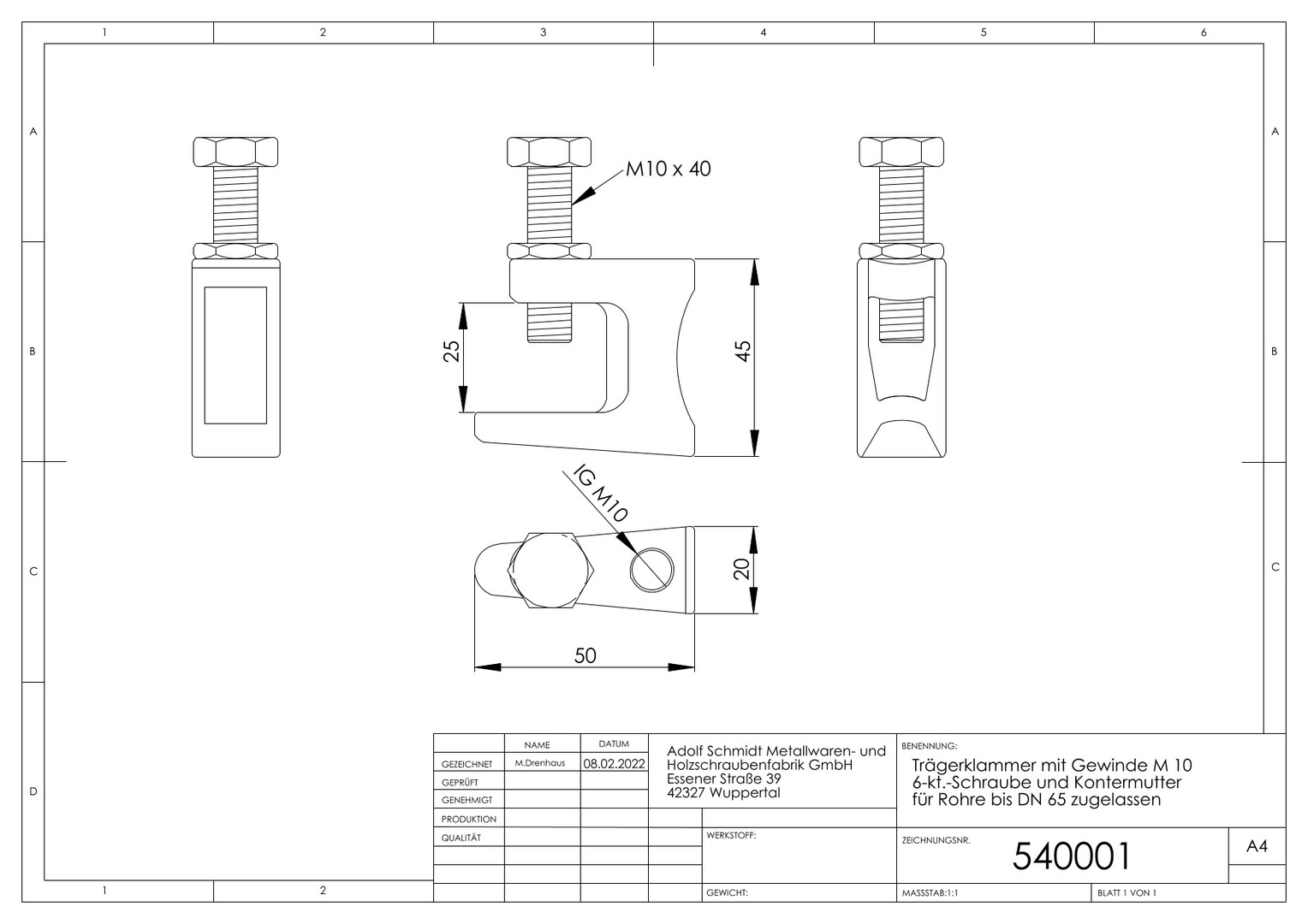 ASW Trägerklammer M 10, Stahl verzinkt, mit durchgehendem Gewinde