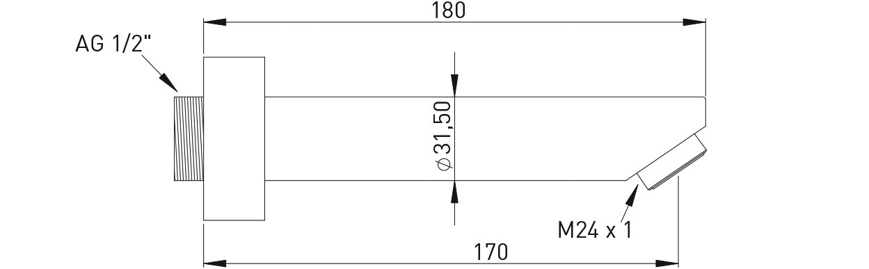 ASW Wanneneinlauf AG 1/2" x 180 mm, Messing verchromt, Mischdüse M 24x1