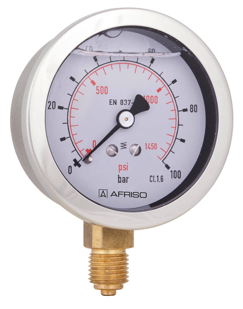 Afriso Rohrfeder-Glyzerinmanometer RF63 D701 radial Gehäuse 63mm, G 1/4 B, 0/0,6 bar