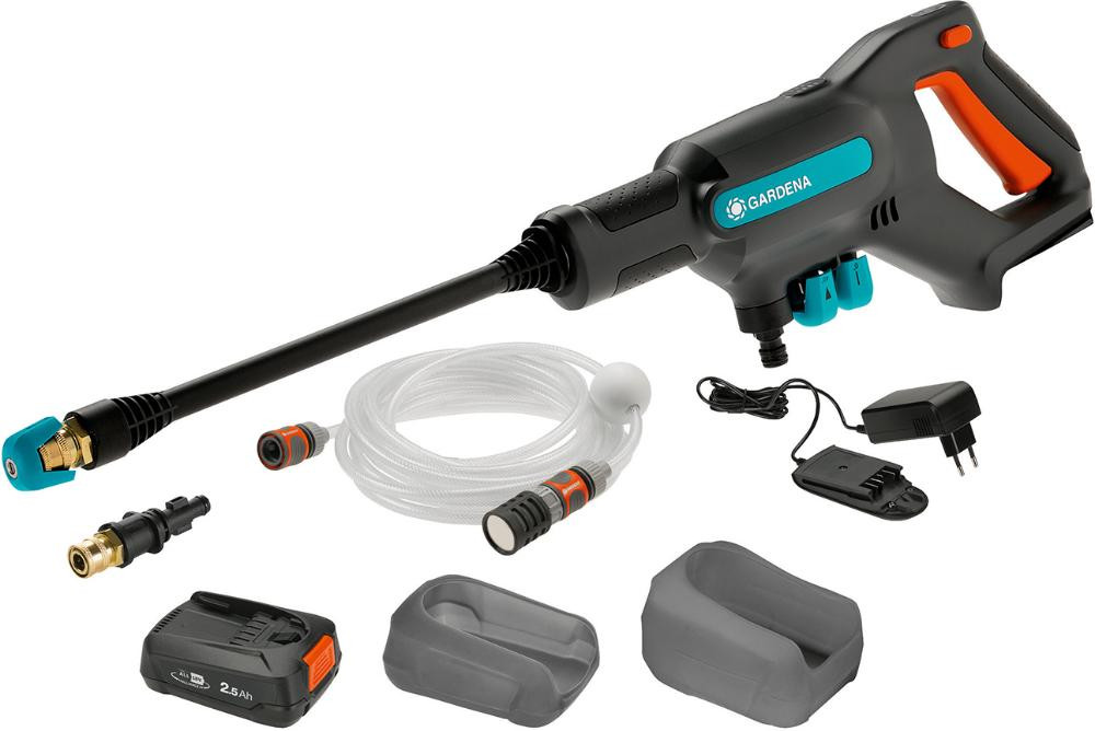 Inkl. System Akku P4A PBA 18V/45, inkl. Ladegerät P4A AL 1810 CV, inkl. 0°, 15° und 40° Düse, inkl. lange und kurze Lanze, inkl. OGS Anschluss für den Gartenschlauch, inkl. 5 m Saugschlauch mit OGSAnschlüssen und FilterHersteller: Gardena Deutschland GmbH, Hans-Lorenser-Str. 40, 89079 Ulm, DE, +497314900, verkauf@gardena.com