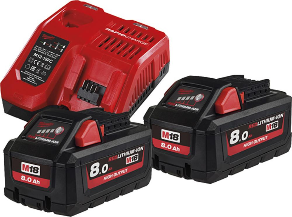 Akku-Starter Set HighOut. M18 HNRG-802 Milwaukee 2x18,0V 8,0 Ah HighOutput Ladegerät M12-18FC Karton