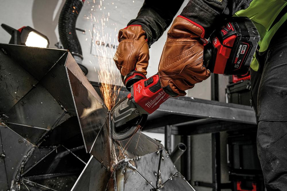 Leistungsstarker und schlanker Winkelschleifer mit vergleichbarer Leistung, wie ein kabelgebundener 1200-W-Winkelschleifer.