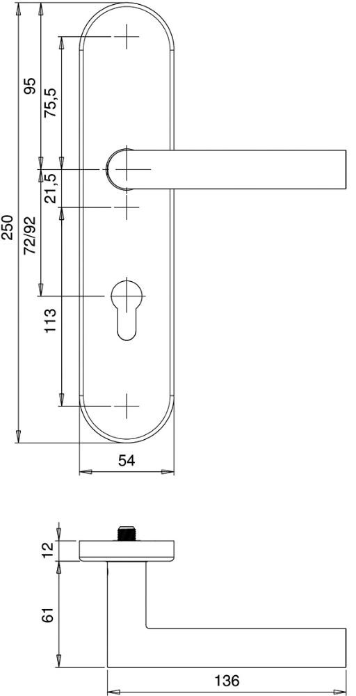 • Profilzylinder gelocht, mit Abdeckung, Entfernung Lochung 92 mm