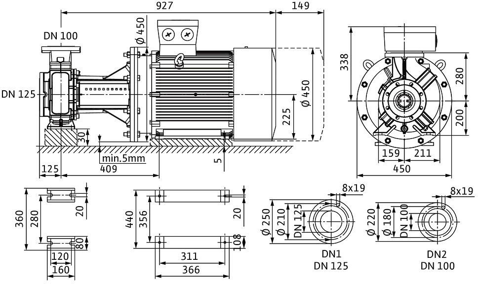 | Nenndurchmesser Anschluss Einlassseite | DN 125 |