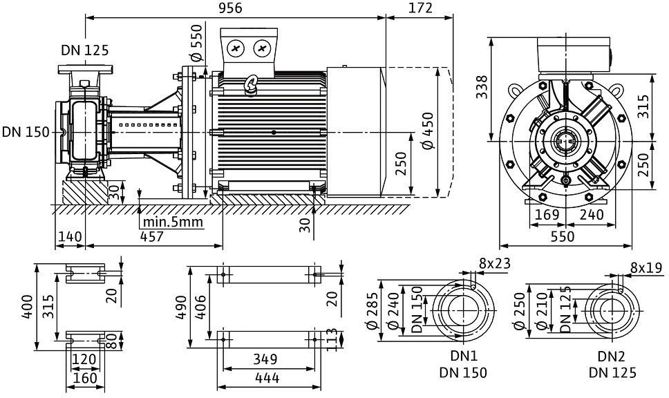 | Nenndurchmesser Anschluss Auslassseite | DN 125 |