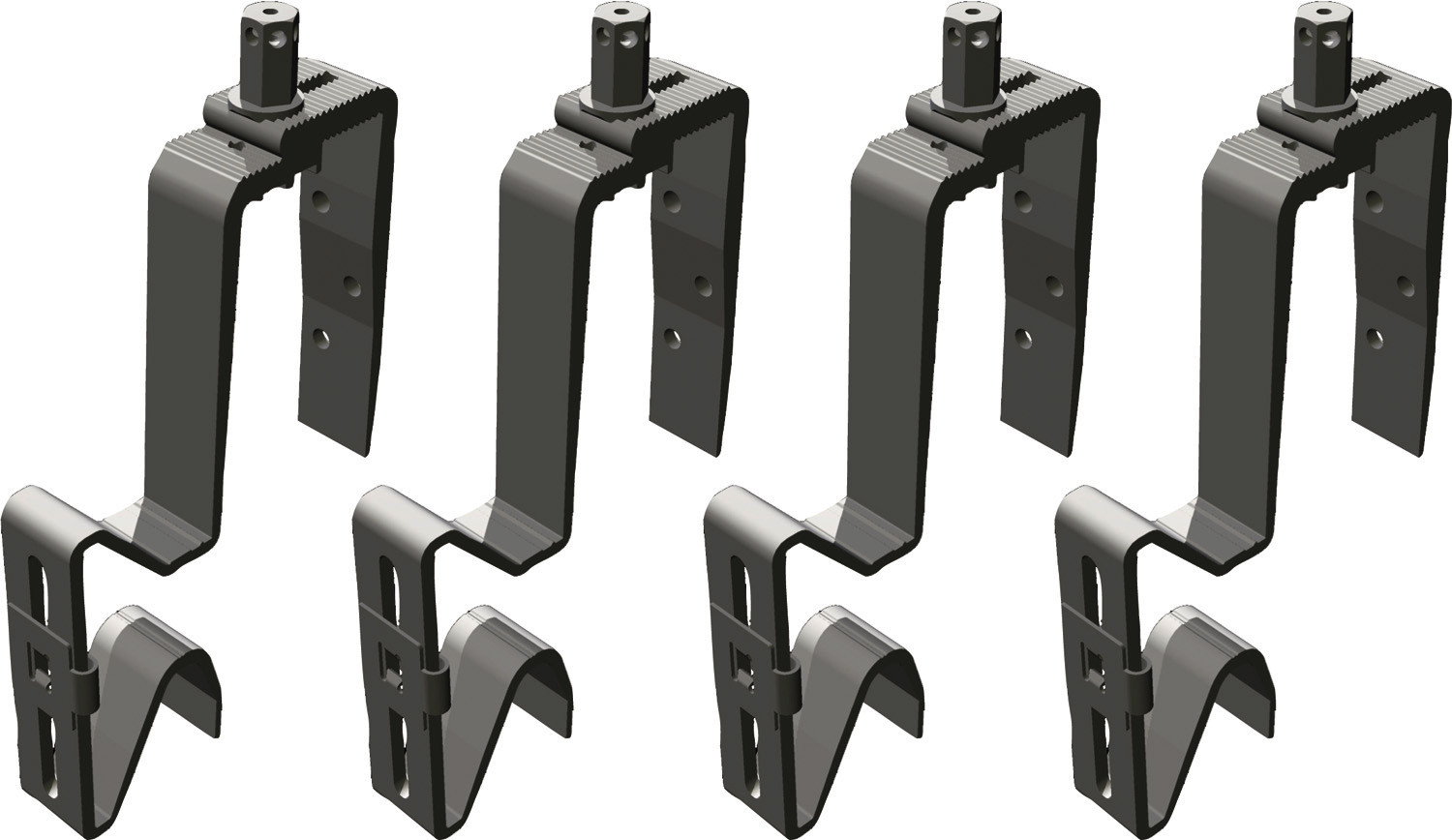 pro Kollektorreihe einmal notwendig, flexible Dachhaken/Sparrenanker aus Aluminium zum Einhängen in die Dachlattung oder Verschraubung mit dem Sparren, anpassbar an die Latten und Pfannenstärke, 4 Stück