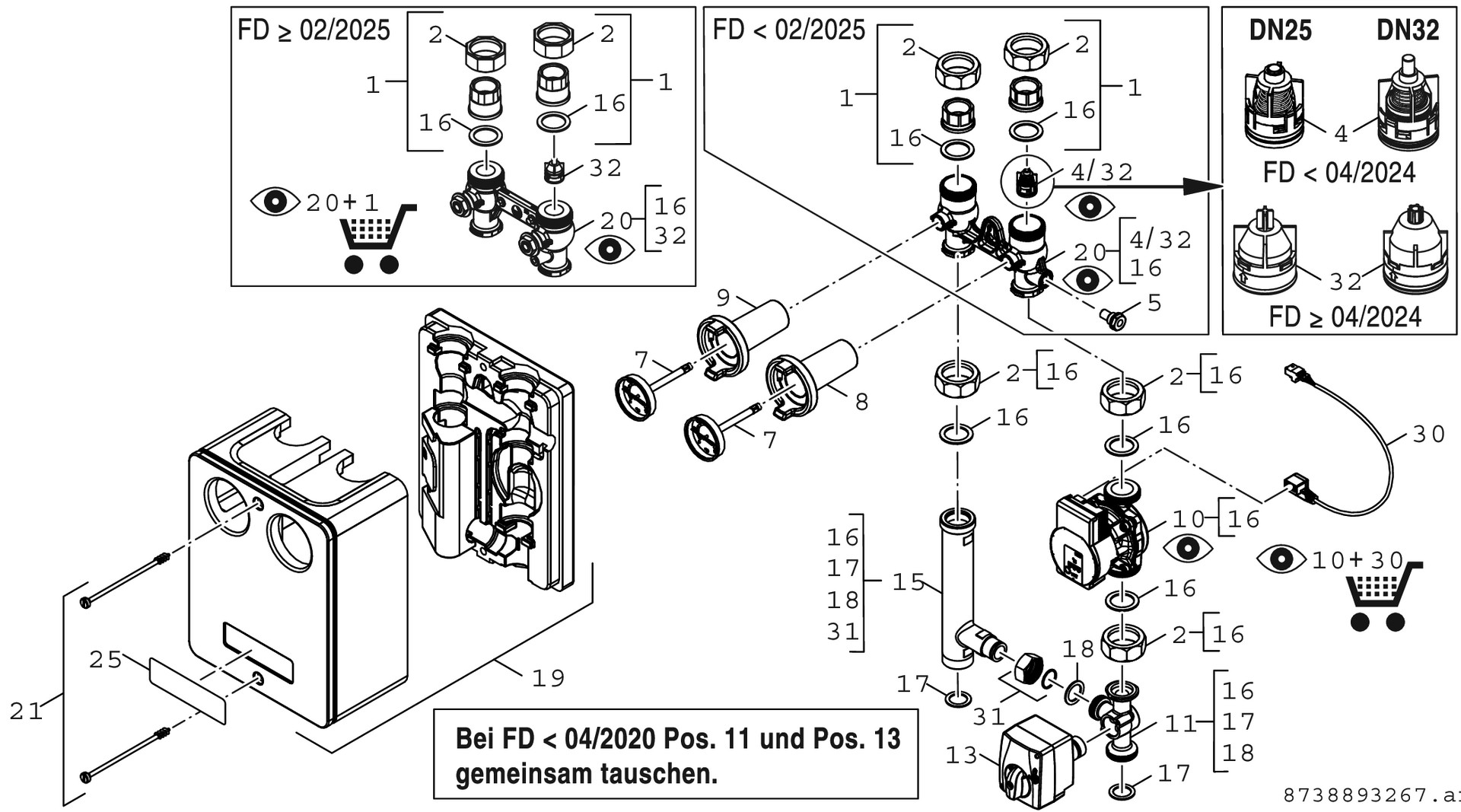 bestehend aus allen Bauteilen, die für einen Heizkreis erforderlich sind, das Set ist serienmäßig mit einer Kompakt-Wärmedämmung ausgestattet, die zur Minimierung der Wärmeverluste beiträgt und zudem als Transportschutz dient, Grundausstattung sind Kugelhähne, Thermometer, Schwerkraftbremse und Hocheffizienzpumpe mit Permanent-Magnet-Technologie