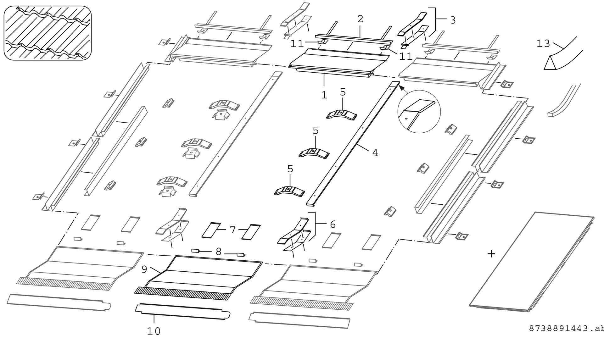 BOSCH Indach-Erweiterungsset FKI6-2T senkrecht, Pfannen, für Flachkollektor SO5000/7000TFV