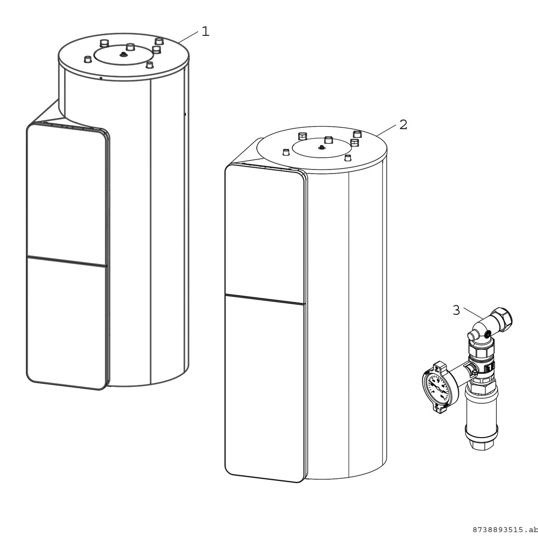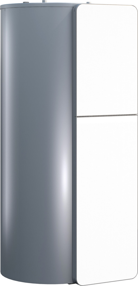 Solarpufferspeicher zur Kombination mit Condens 9000i WM, Pufferspeicher mit druckfestem Stahlbehälter und einer Heizschlange, silberfarbene Stahlmantelverkleidung, Speicherfühler im Lieferumfang, Anschlussgruppe HU oder SHU, zusätzliche Anschlussmöglichkeit für Kaminofen, Designblenden schwarz/weiß, in angepassten Höhen für Condens 9000i WM