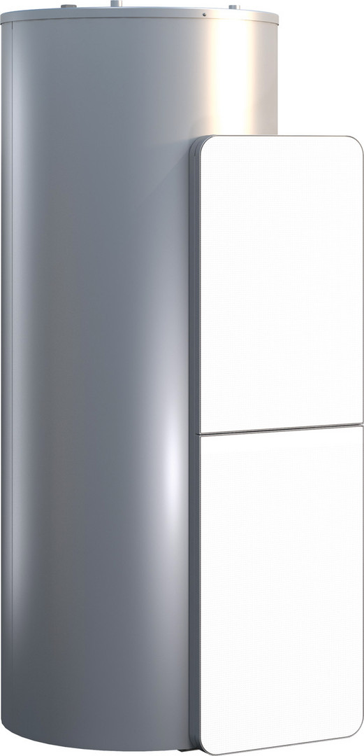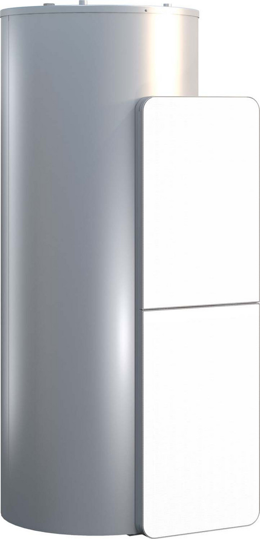 Solarpufferspeicher zur Kombination mit Condens 9000i WM, Pufferspeicher mit druckfestem Stahlbehälter und einer Heizschlange, silberfarbene Stahlmantelverkleidung, Speicherfühler im Lieferumfang, Anschlussgruppe HU oder SHU, zusätzliche Anschlussmöglichkeit für Kaminofen, Designblenden schwarz/weiß, in angepassten Höhen für Condens 9000i WM