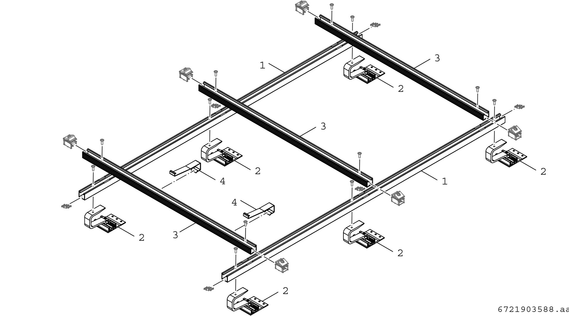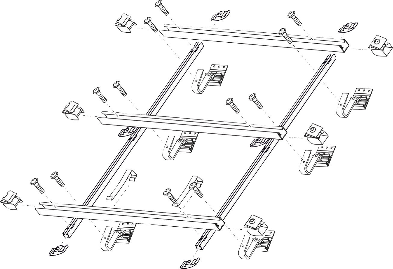 für höhere Schneelasten bis 3,8 kN/qm und 1,1 kN/qm Windlasten oder für Schneelasten bis 3,1 kN/qm und 1,6 kN/qm Windlasten, pro Kollektorreihe einmal notwendig, Aluminium-Profilschienen, Befestigungsmaterial und Dachanbindung für den ersten Kollektor