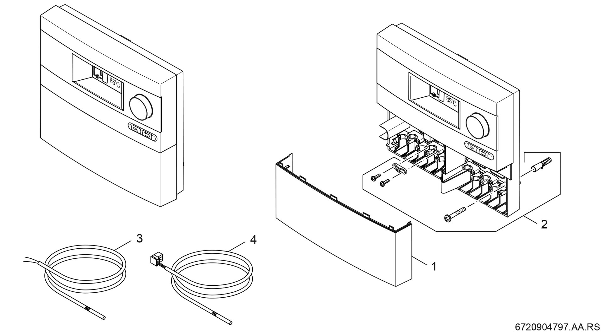 hinterleuchtetes LCD-Segmentdisplay mit animiertem Anlagepiktogramm, Einhandbedienung, Funktionskontrolle, Schaltausgang für HE-Solarkreispumpe mit einstellbarer unterer Modulationsgrenze, einstellbare Einschalttemperaturdifferenz 4-20 K und Speichertemperaturbegrenzung 20-90 °C, einstellbare Kollektor-Maximal- und Mindesttemperatur, Röhrenkollektorfunktion, ein NTC-Kollektor- und ein NTC-Speicherfühler, optional weitere Speicherfühler möglich, Befestigungsmaterial zur Wandbefestigung