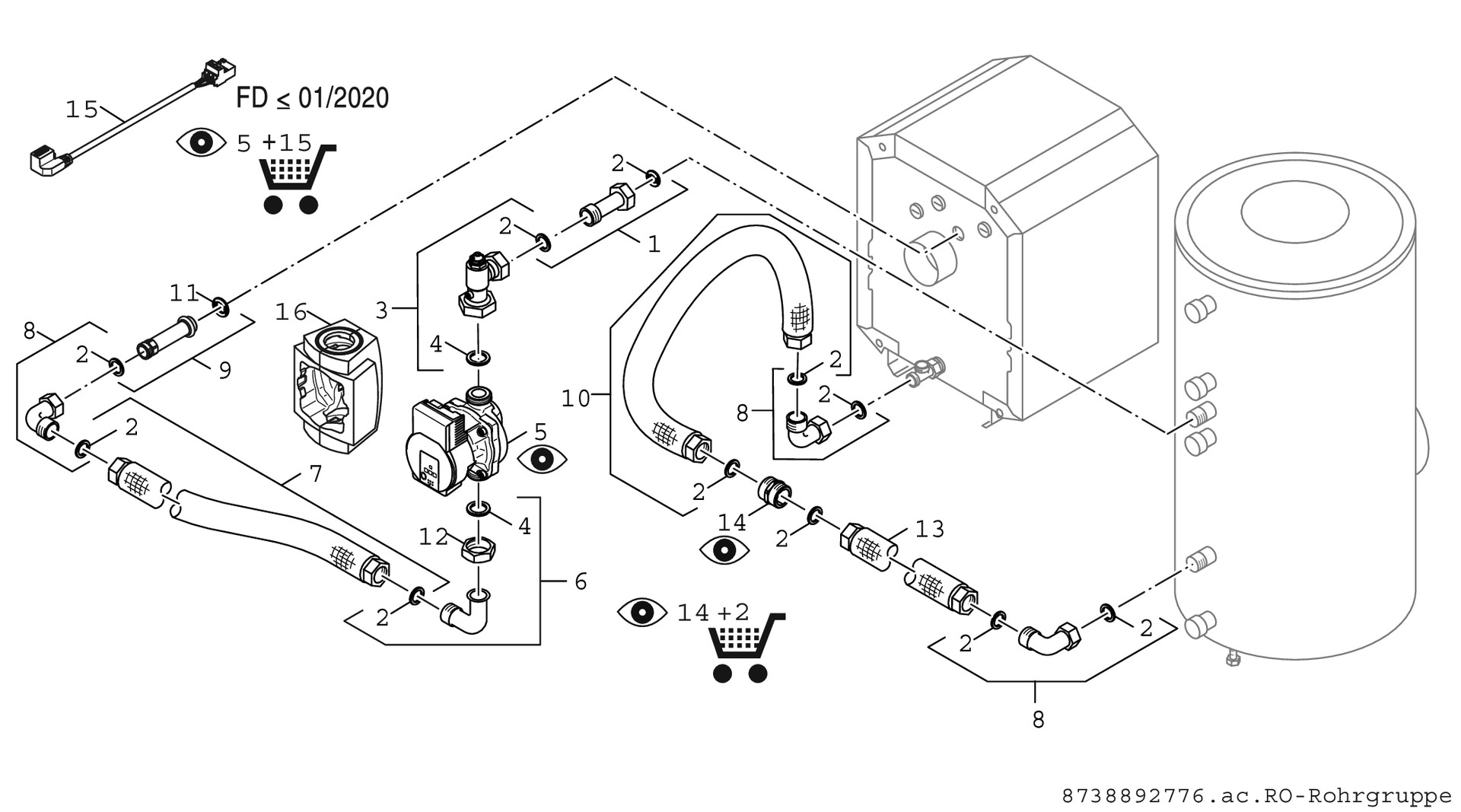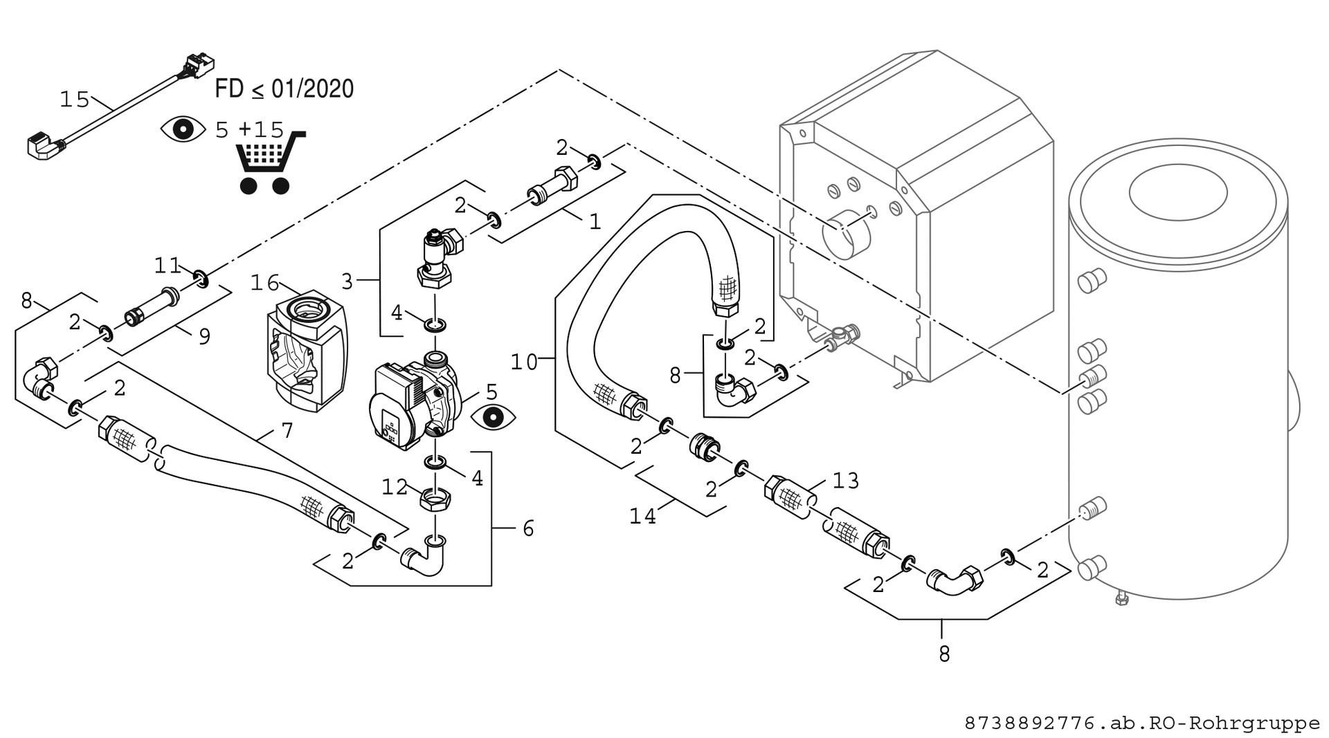 mit Schwerkraftbremse und Entleerung, für OC7000F 18...35 mit (S)W 120...300 P(K) 1 und bivalente Speicher (mit Verlängerung 63020497 auch für Speicher W 400...500-5 einsetzbar)