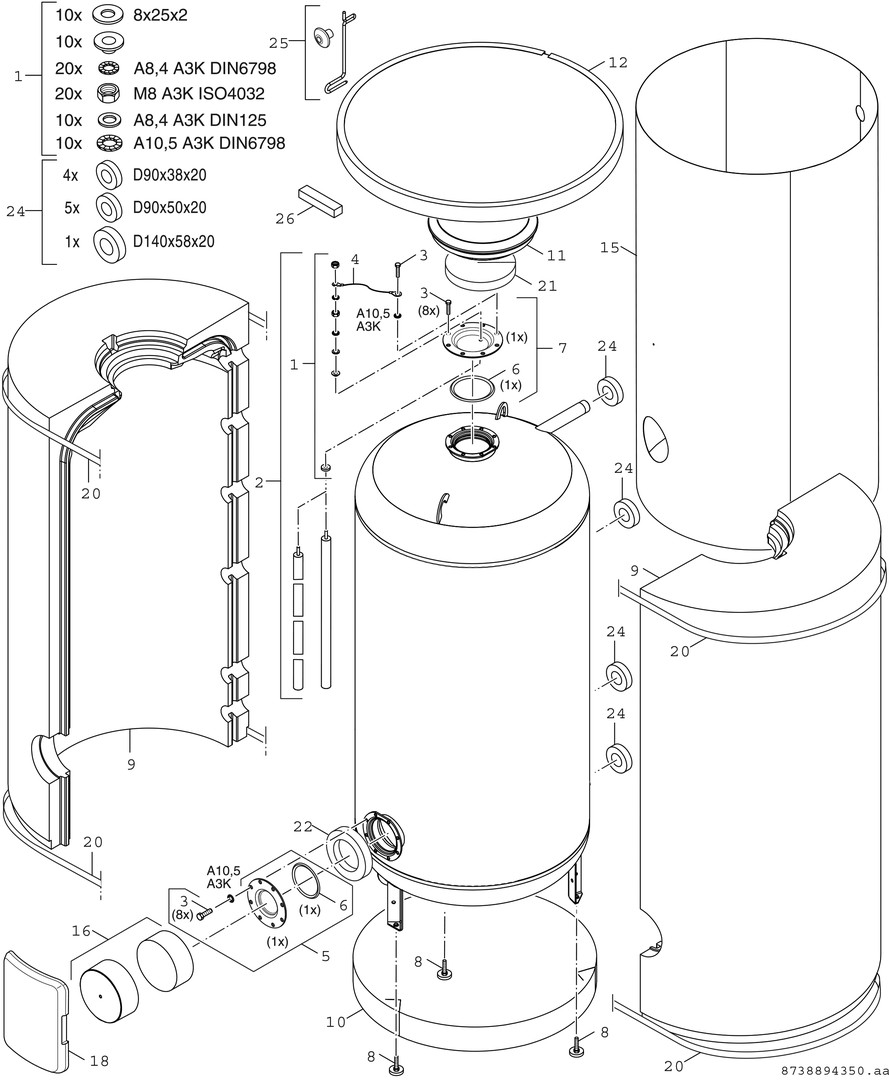 mit druckfestem, emailliertem Stahlbehälter ohne Wärmetauscher, W 500-5 PX 1 B eingeschäumt mit zusätzlicher 40 mm Vliesisolierung, ab 750 l: 105 mm Wärmedämmstoff aus Hartschaum-Schalen mit silbernem Polystyrol-Mantel, Service durch groß dimensionierte Inspektionsöffnungen oben und vorne, isoliert eingebaute Magnesiumschutzanode, Digitalthermometer als Zubehör einsetzbar, verwendbar mit Warmwasser-Übergabestation TS...-3(N)