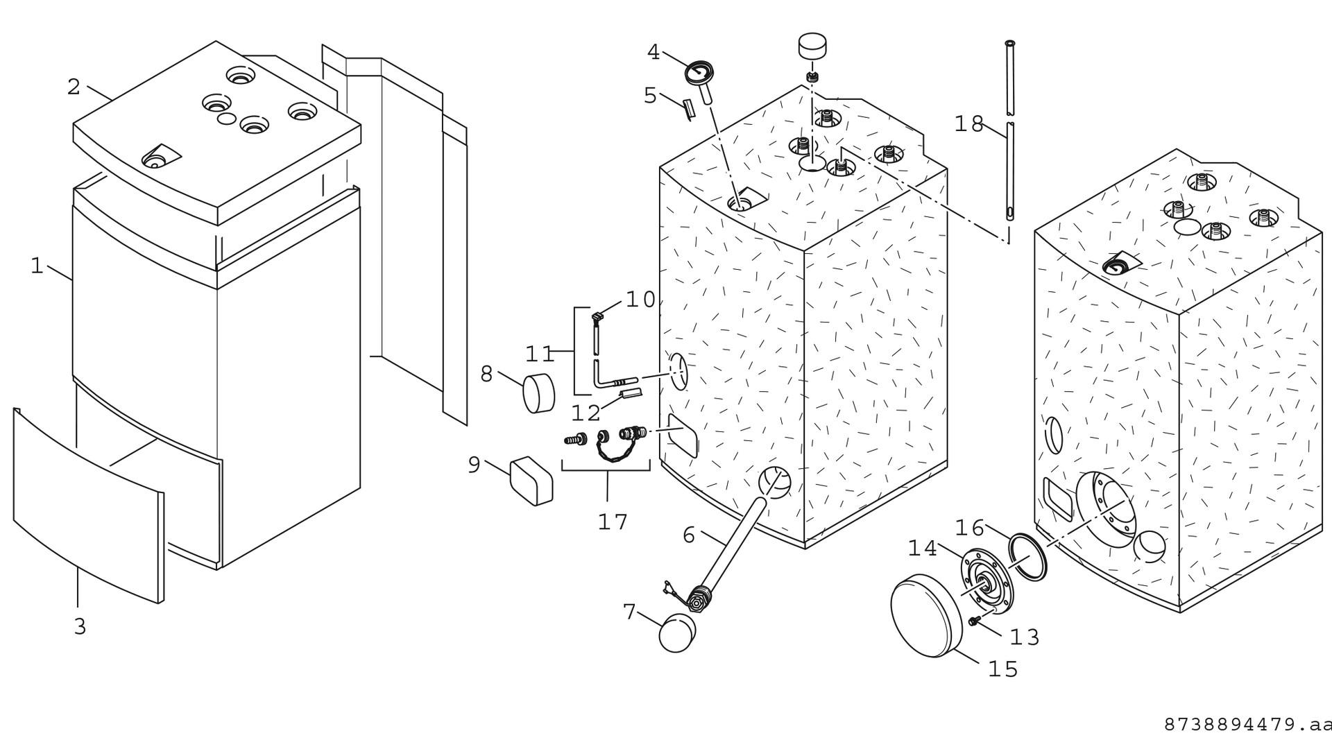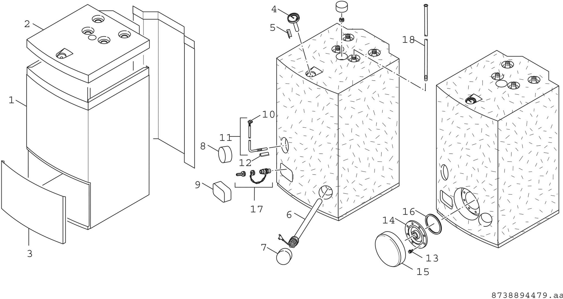 druckfester emaillierter Stahlbehälter, oben liegende Heizungs-/Sanitäranschlüsse, Wärmedämmung aus PU-Hartschaum, isoliert eingebaute Schutzanode, Thermometer, Entleerungshahn, NTC-Speicherfühler, Zirkulationsanschluss (ZL 102/1 separat bestellen), Verkleidung weiß, verwendbar mit Cerapur und Ceramini