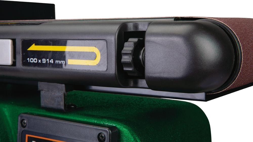 • Schneller und einfacher Schleifbandwechsel über Schnellspannvorrichtung, ohne Zuhilfenahme von Werkzeug