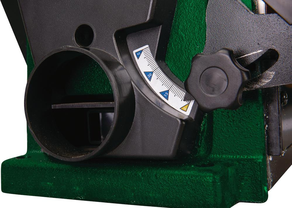 • Doppelt geführter, schwenkbarer Arbeitstisch stufenlos von 0° bis 45°