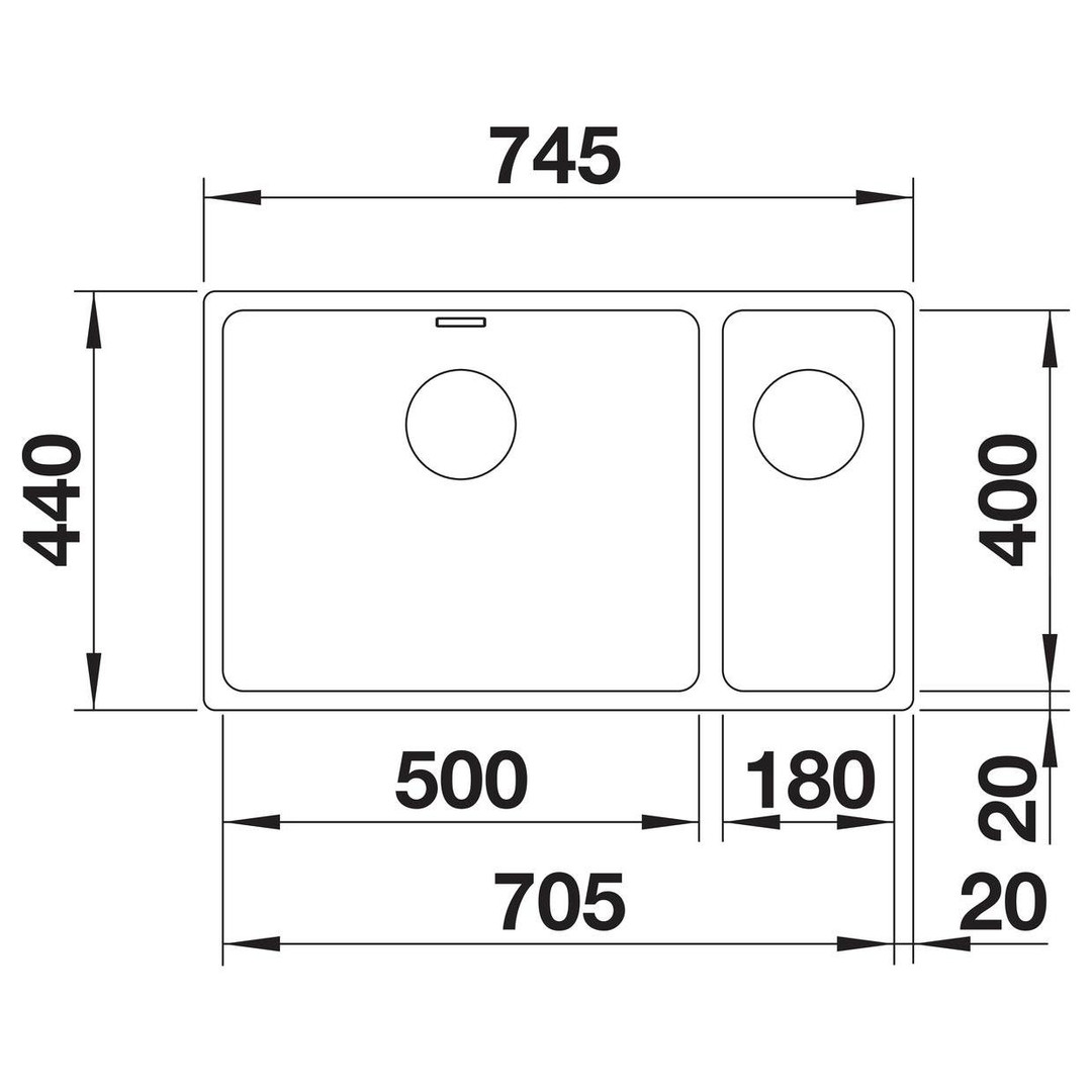 Blanco Becken ANDANO 500/180-U 74,5 x 44 cm, Edelstahl Seidenglanz, Hauptbecken links