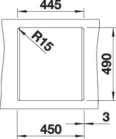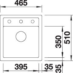 Blanco Becken DALAGO 45 SILGRANIT 46,5 x 51 cm, PuraDur alumetallic, Ablauffernbedienung mit Drehbetätigung