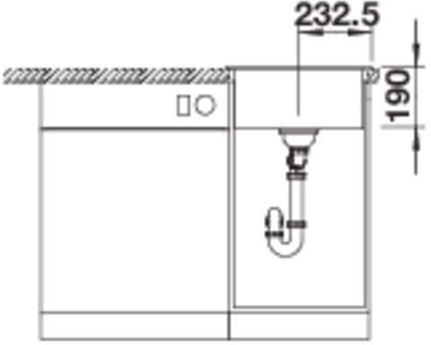 Blanco Becken DALAGO 45 SILGRANIT 46,5 x 51 cm, PuraDur alumetallic, Ablauffernbedienung mit Drehbetätigung K9462118