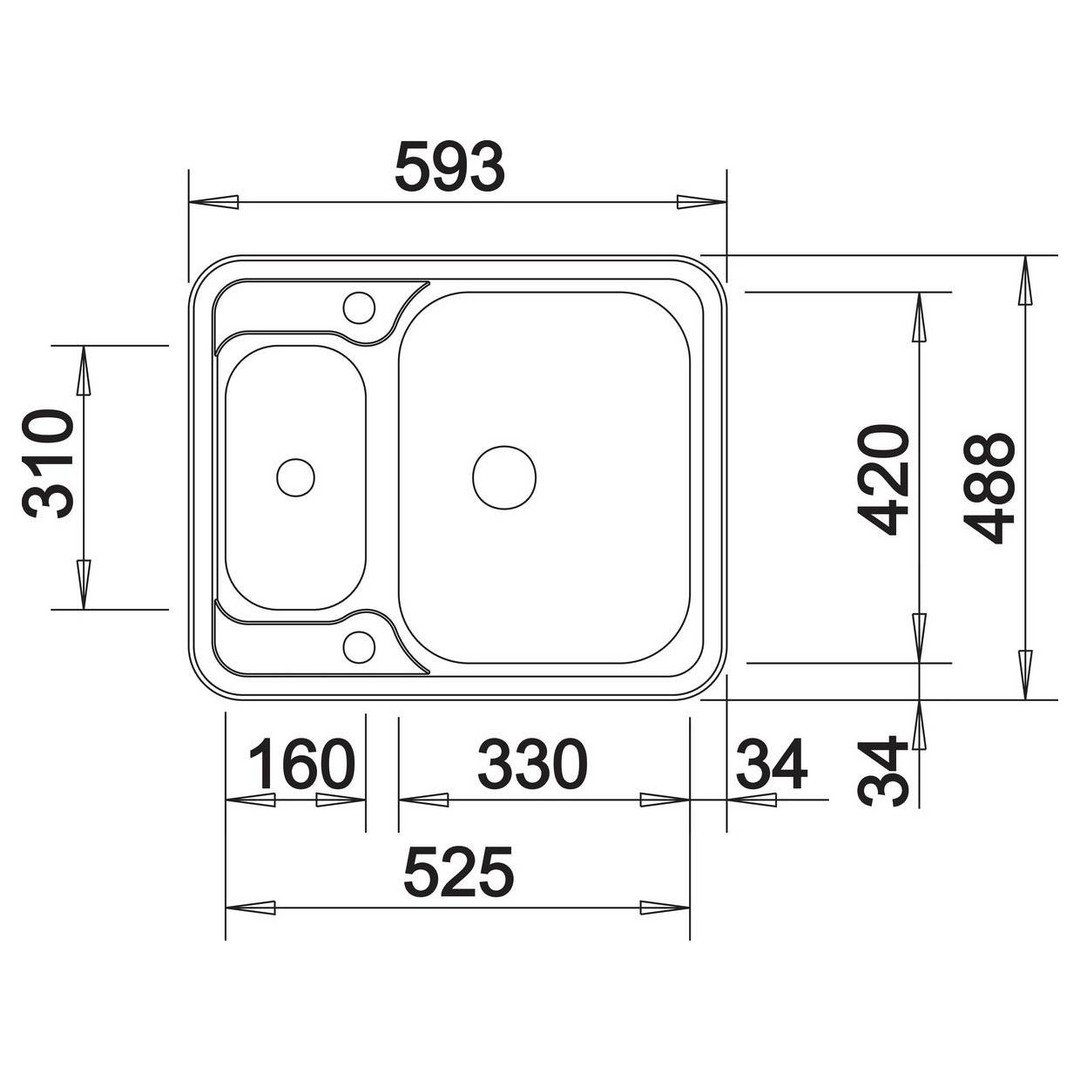 Beckentiefe 16/13 cm, gelochte Edelstahlschale, Ablaufgarnitur mit Raumsparrohr, 2x 3 1/2" Korbventil mit Ablauffernbedienung (Drehbetätigung), IF-Flachrand, für den flächenbündigen und aufliegenden Einbau, Untermaß 60 cm