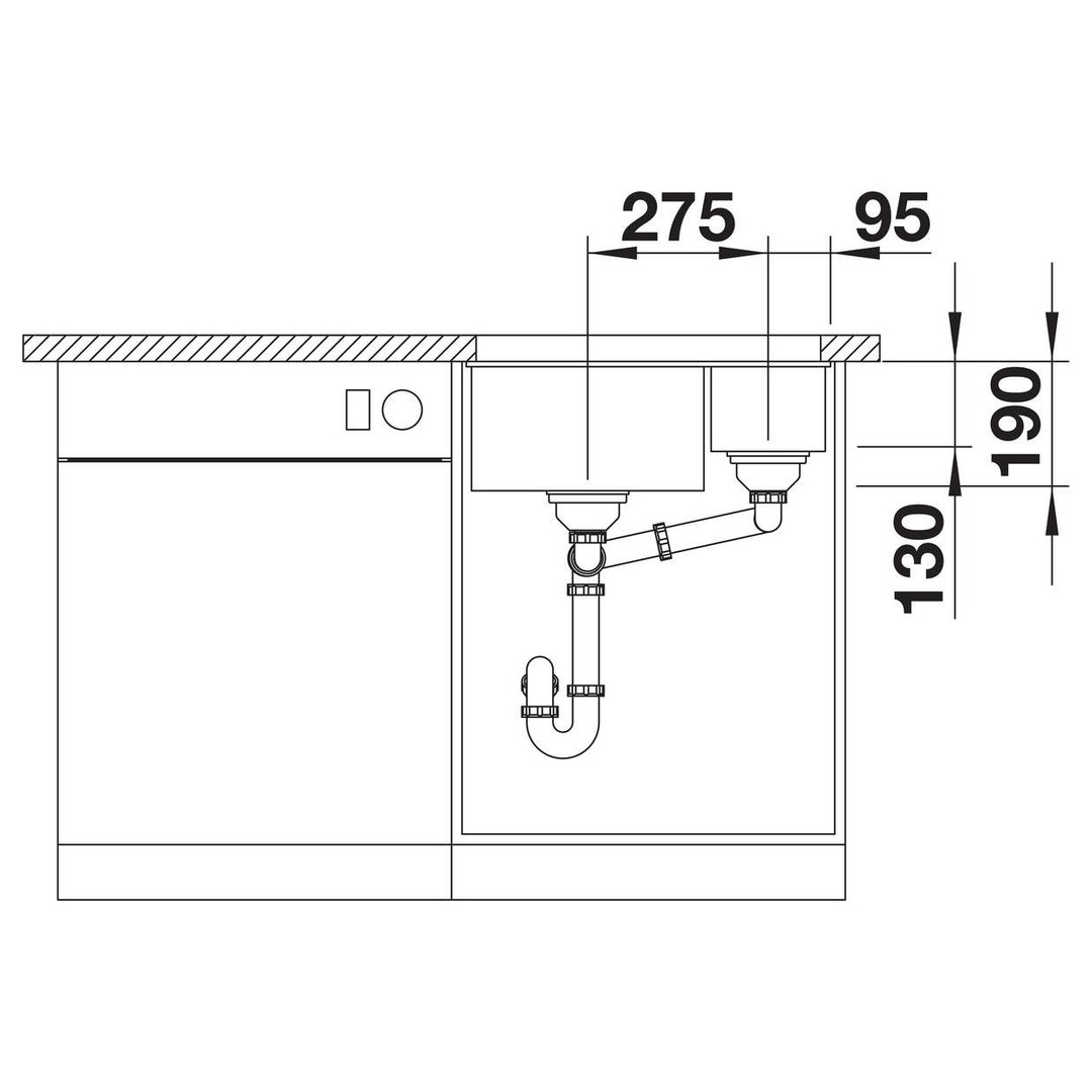 Blanco Becken ROTAN 340/160-U SILGRANIT 55,5 x 46 cm, schwarz, links, ohne Ablauffernbedienung K14845904