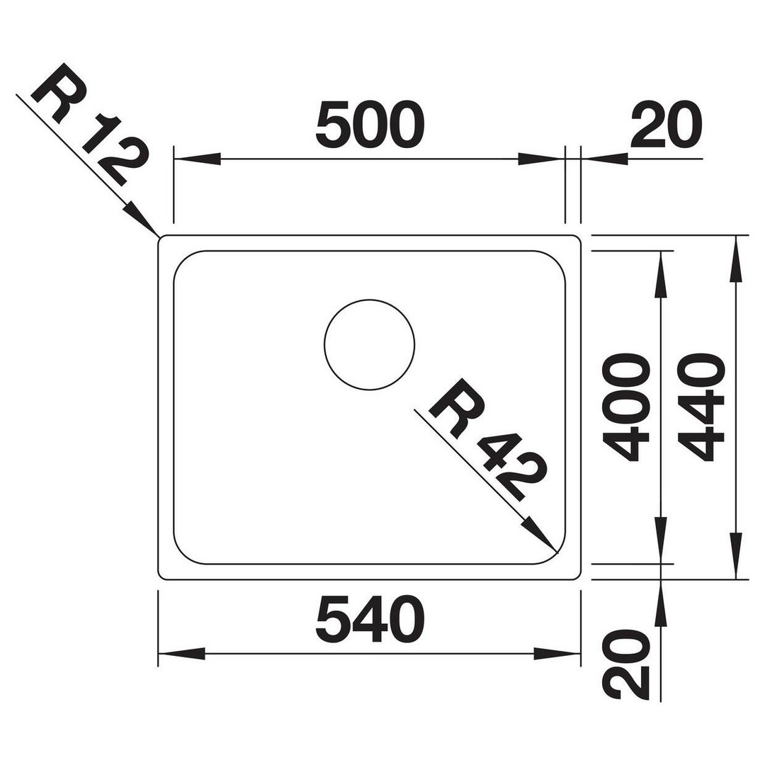Blanco Becken SOLIS 500-IF 54 x 44 cm, Edelstahl Bürstfinish, ohne Ablauffernbedienung