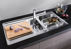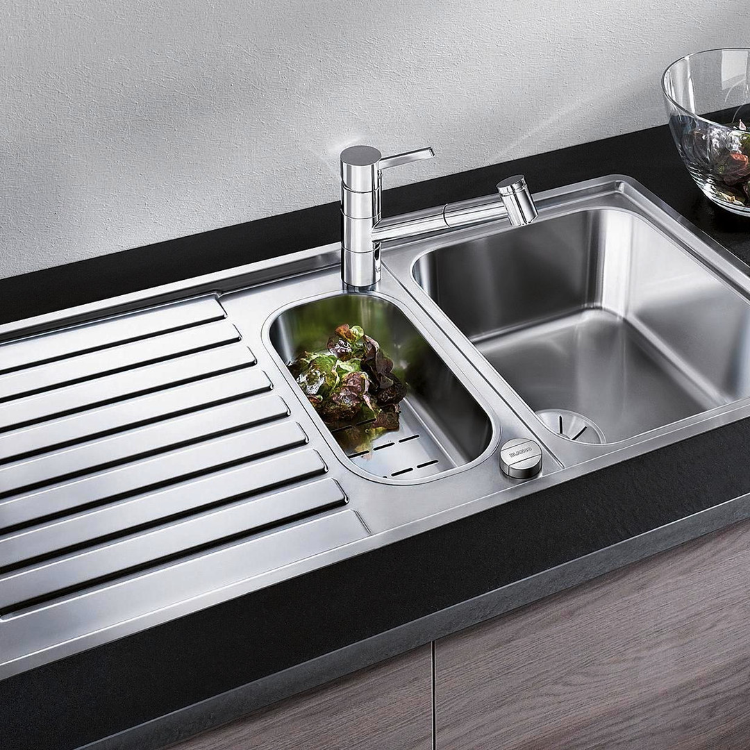 Blanco Spüle CLASSIC Pro 6 S-IF 100 x 51 cm, Edelstahl Seidenglanz, reversibel, mit Ablauffernbedienung/Schale