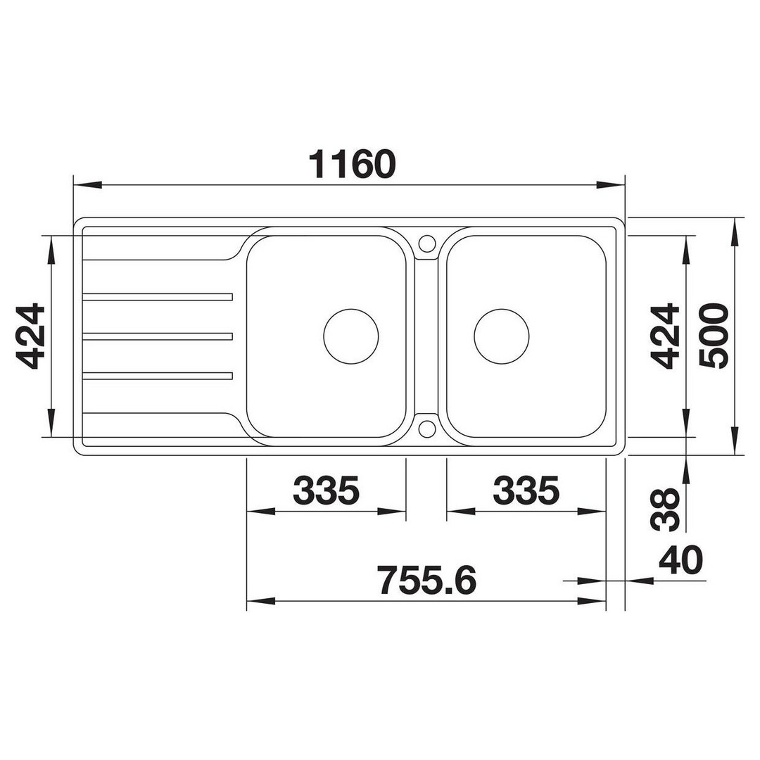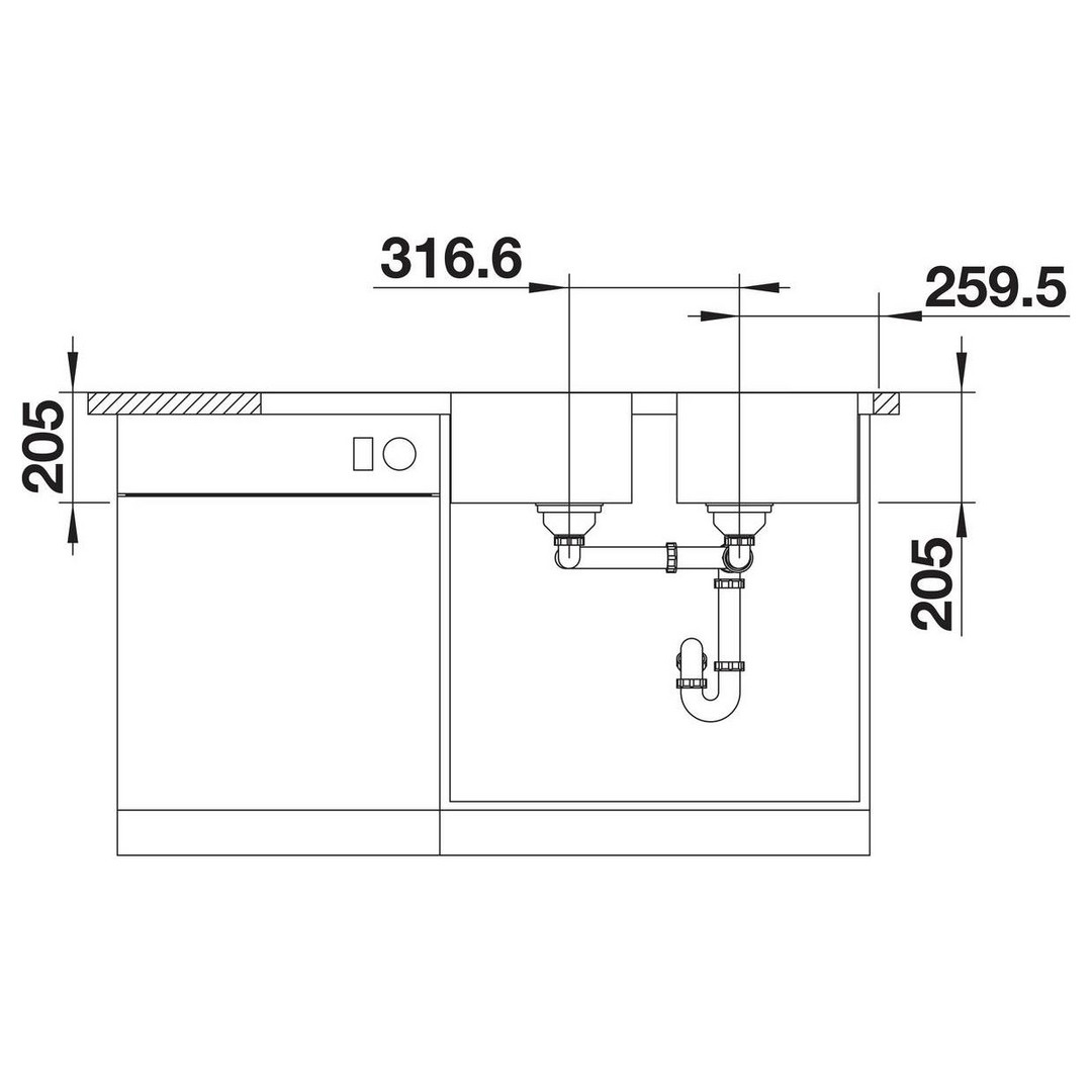 Beckentiefe 20,5/20,5 cm, Batteriebank und Abtropffläche, Ablaufgarnitur mit Raumsparrohr, 2x 3 1/2" Korbventil mit Ablauffernbedienung (Drehbetätigung) für 1 Becken, IF-Flachrand für flächenbündiger Einbau oder aufliegenden Einbau, reversibel einbaubar, Untermaß 80 cm