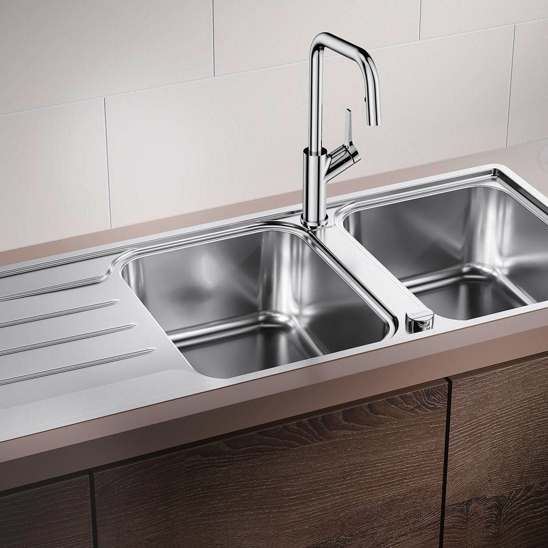 Blanco Spüle LEMIS 8 S-IF 116 x 50 cm, Edelstahl Bürstfinish, reversibel, mit Ablauffernbedienung