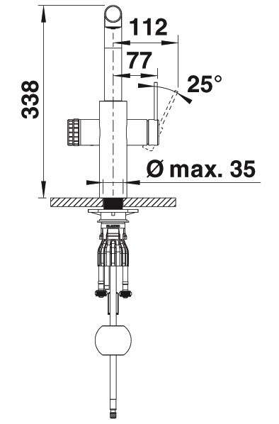 die Armatur liefert gefiltertes Wasser, das gekühlt, mit Kohlensäure (still, medium, klassisch) oder kochend heiß sein kann, zusätzlich zum normalen kalten und warmen Leitungswasser, mit separatem Hebel für Leitungswasser auf der rechten Seite und einem Drehregler mit Touch-Funktion links für die Auswahl der veredelten Wasseroptionen, 7,5 l/min bei 3 bar Druck, Click & Touch (Auswahl der vordefinierten Wassermenge dank des Drehrades und der intuitiven Touch-Control, 4 individuell einstellbare Wasserpräferenzen, Schutzmechanismus für die sichere Handhabung von kochendem Wasser, 180° schwenkbarer Auslauf für Mischwasser und veredeltes Wasser, Material massiver Edelstahl, Armaturenbohrung mit Ø 35 mm erforderlich, Installation mit BLANCOLock, mit Keramikscheiben-Kartusche, patentierter Strahlregler, ausziehbare 2-Strahl Brause für Mischwasser, flexible Anschlussleitungen, 700 mm lang, 3/8" Mutter, Stabilisierungsplatte, mit Rückflussverhinderer nach EN 1717