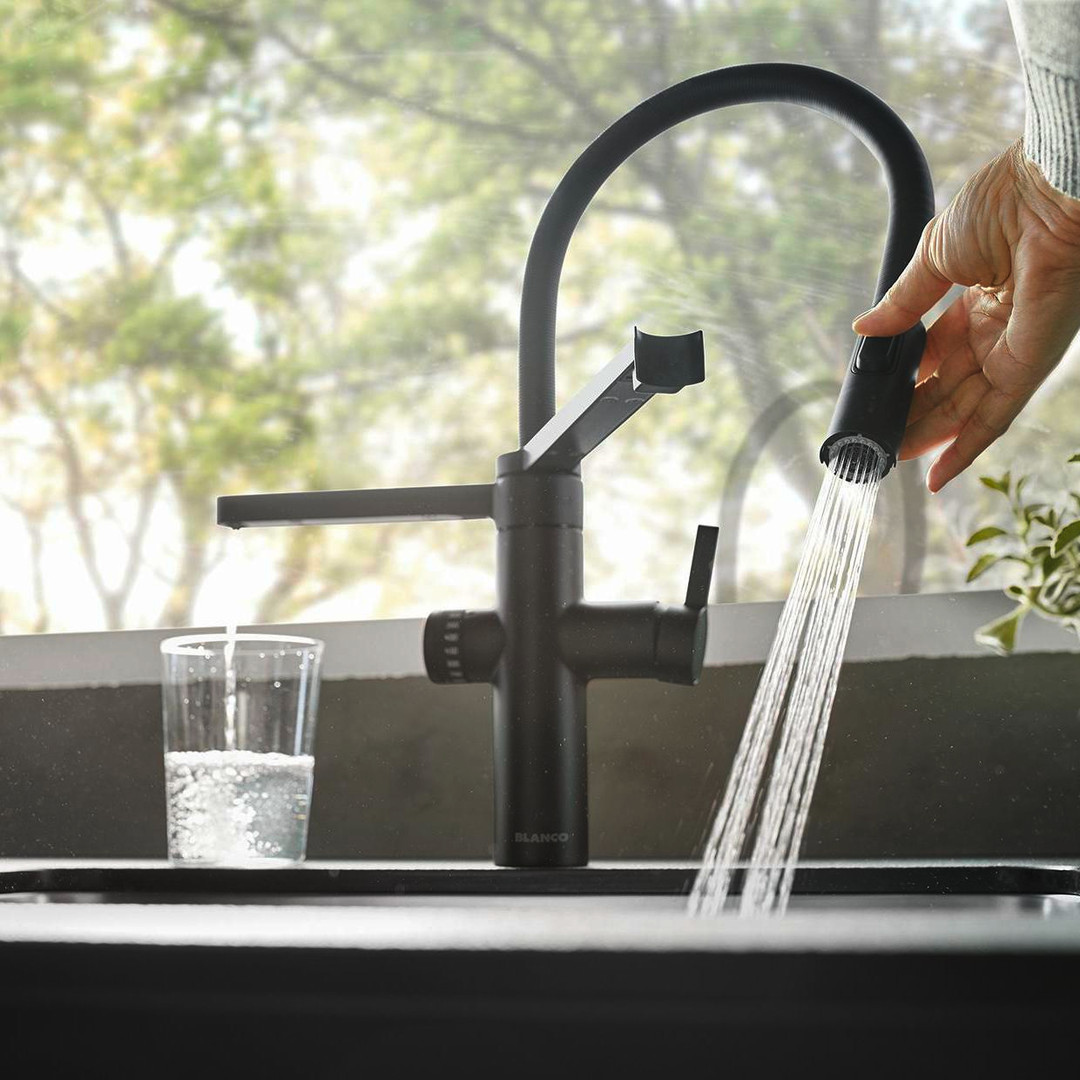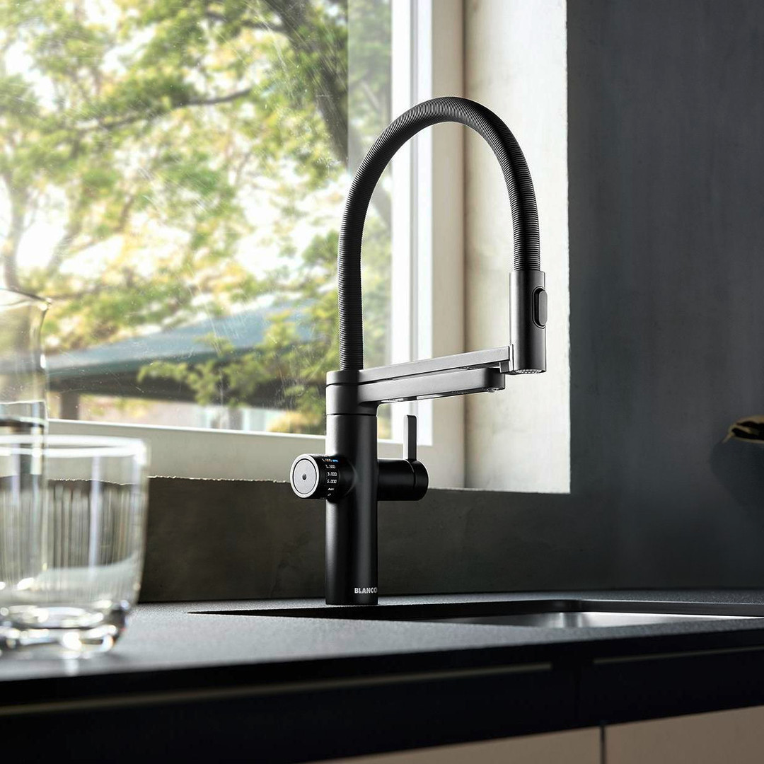 Blanco Spültisch-Einhebelmischer DRINK.FILTER EVOL-S PRO HD, 3-in-1 Semi-Profi-Armatur, schwarz matt (Sonderfarbe) K18015186