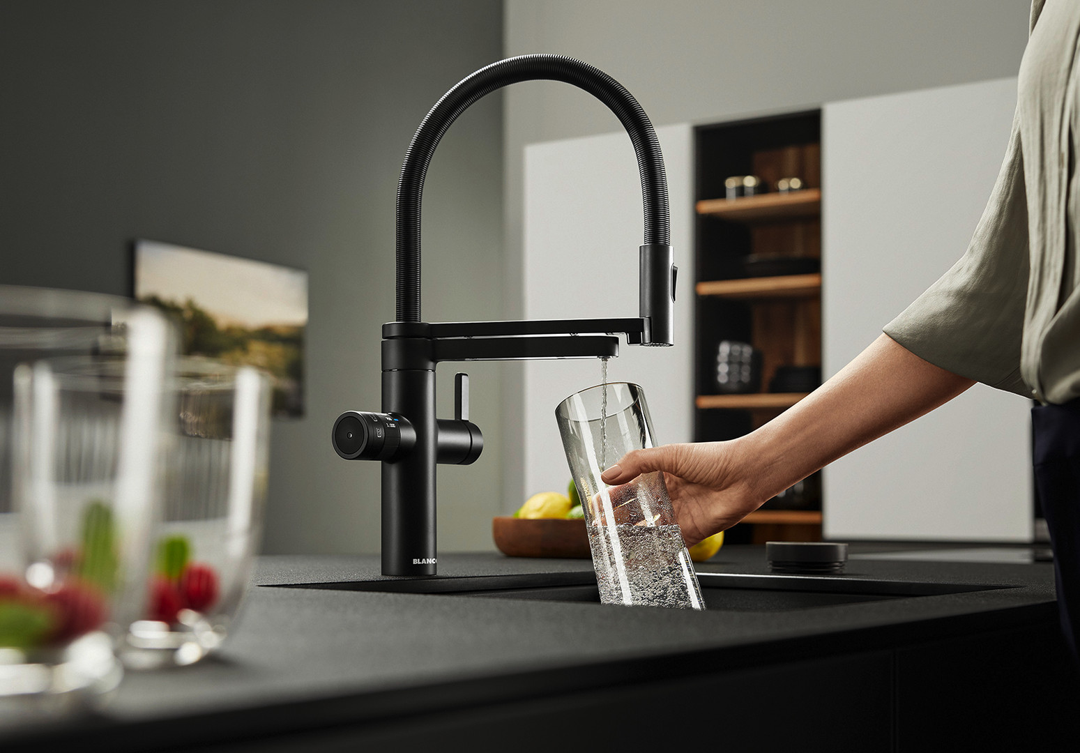 Blanco Spültisch-Einhebelmischer EVOL-S Pro Soda HD, Systemarmatur, schwarz matt K23709807