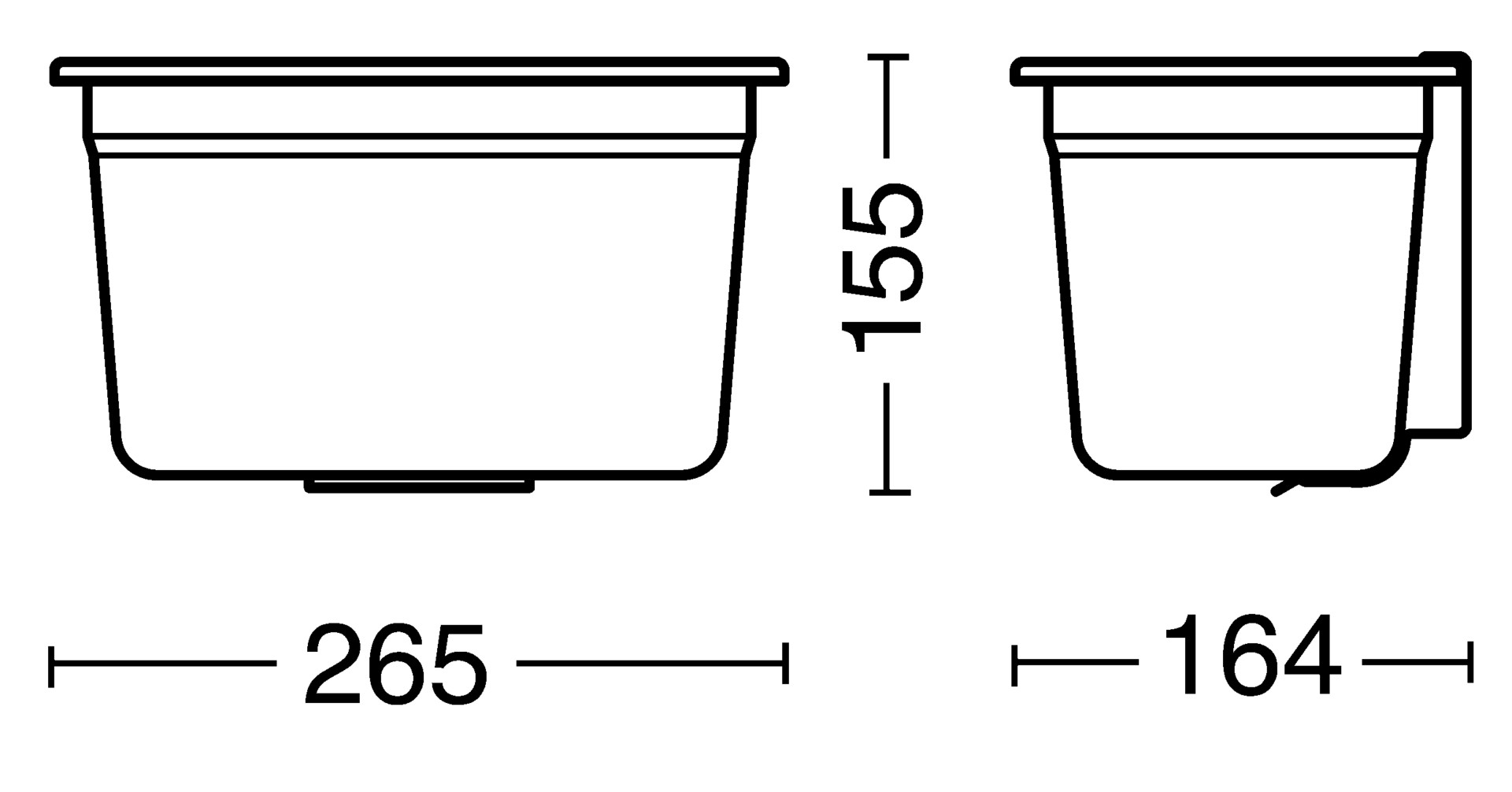 (H x B x T) 155 x 265 x 164 mm, Wandhalter und Behälter aus fein gebürstetem und elektropoliertem Edelstahl, autoklavierbar bis 121 °C und 1 bar