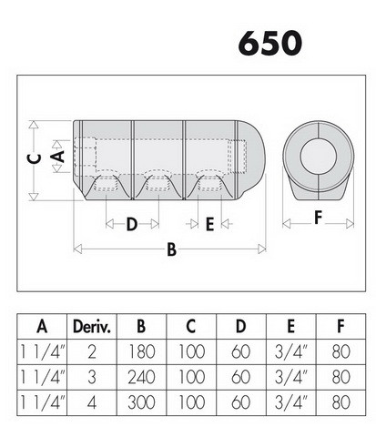 Caleffi Einfachverteiler 650 4 Abgänge, 1 1/4" x 3/4" AG, mit Isolierung