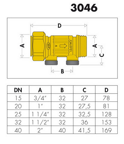 Caleffi Rückflussverhinderer 3046 DN 15, 3/4" IG ÜW x 3/4" AG, kontrollierbar