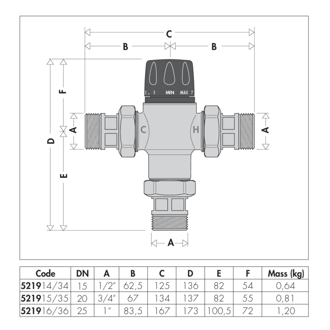 einstellbar, mit Verbrühschutzfunktion, mit Schmutzfängern, entzinkungsfreies Messing-Gehäuse, max. Betriebsdruck 10 bar, max. Eingangstemperatur 90 °C