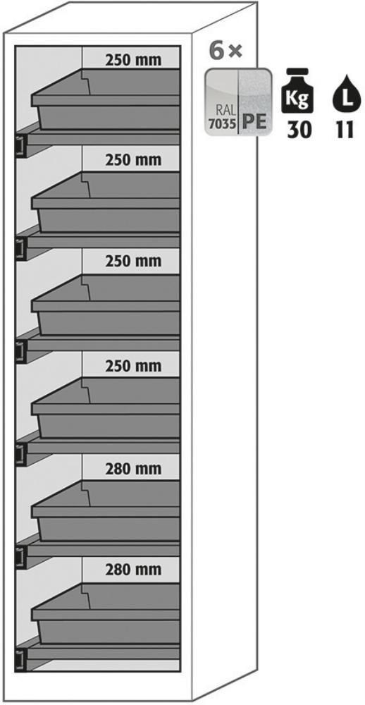 Hinweis: Für die vorschriftsmäßige Lagerung nicht entzündbarer Chemikalien und Giftstoffe in Arbeitsräumen (gemäß TRGS 510, DGUV-I 213-850 und Gefahrstoffverordnung).
