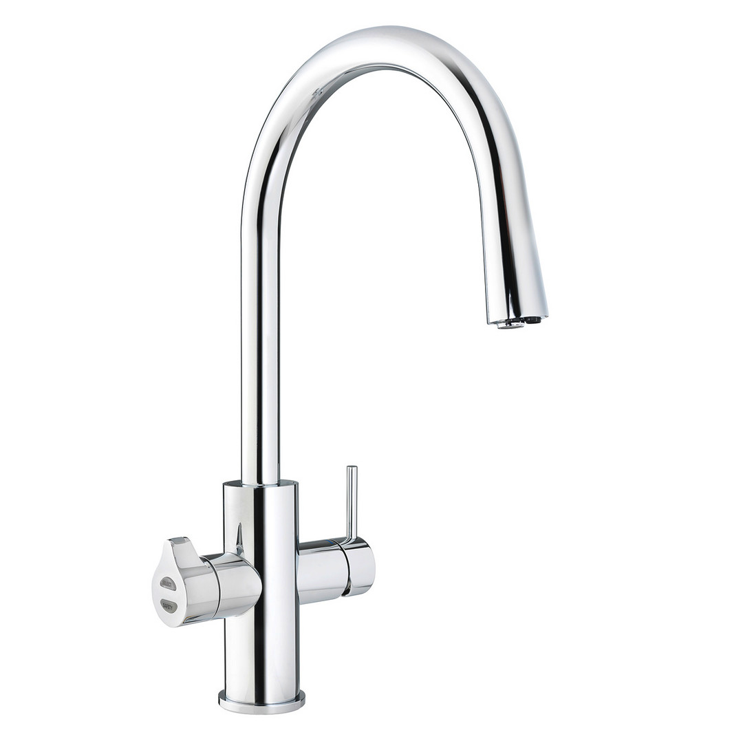 für kochendes gekühltes und kohlensäurehaltiges Trinkwasser aus dem Zip HydroTap-Untertischgerät sowie zusätzlich normales Leitungswasser aus der zentralen oder dezentralen Versorgung (regulierbar durch den seitlichen Bedienhebel), schwenkbarer Rohrauslauf 22,5 cm, Höhe 44,5 cm, 50 mm Lochbohrung erforderlich