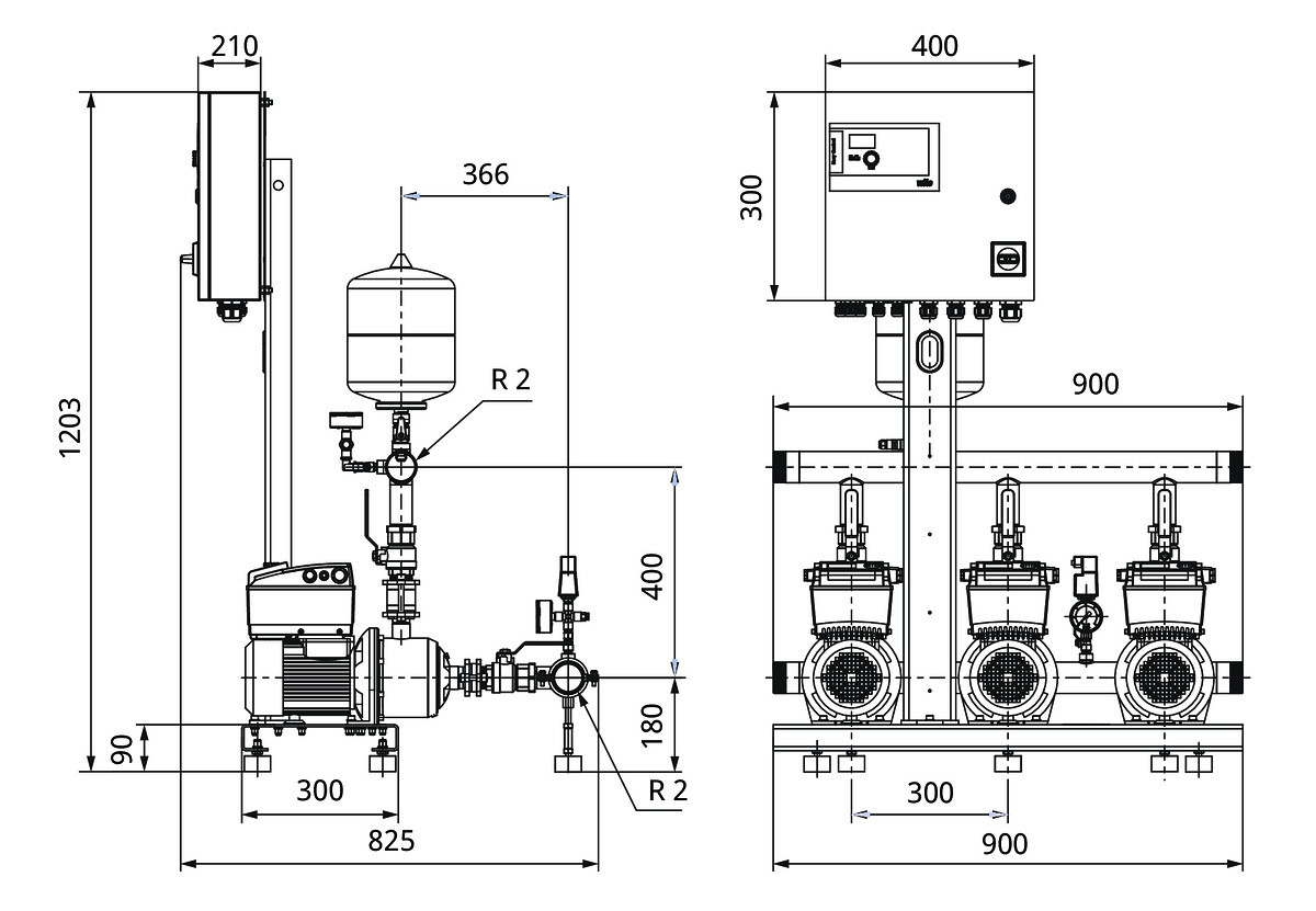 Comfort-Vario COR-3MHIE204EM/ECe-WMS (1~230 V, 50/60 Hz), R 2 (PN 10), R 2 (PN 10), 1100 W