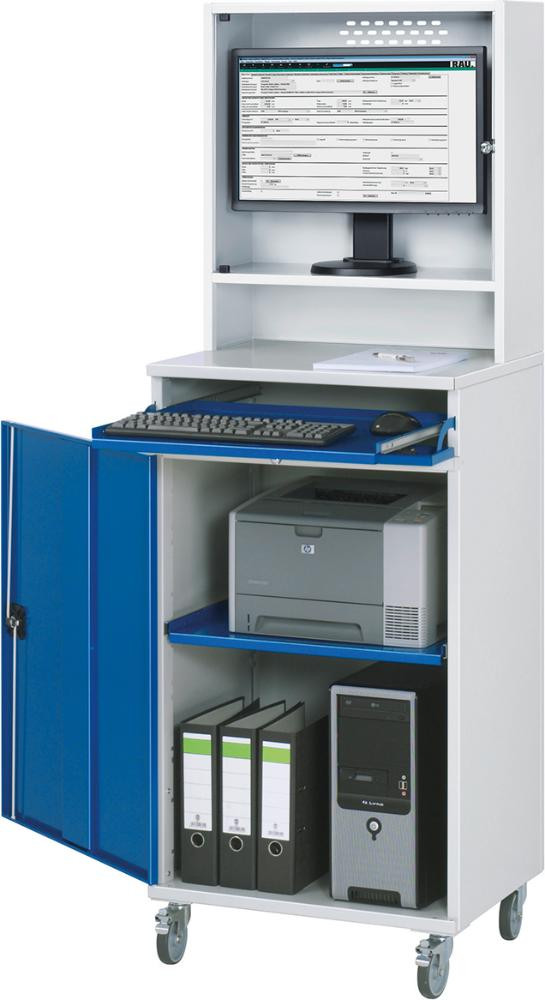 Computer-Schrank B650xT520xH1895 mm RAL 7035/5010 mobil Gehäuse mit Tür